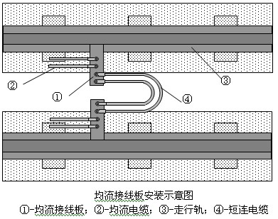 均流接線板的焊接方法和回流接線板相同,唯一的區別是確定其位置,回流接線板兩板之間沿走行軌有1850mm的間距,而均流接線板則沒有,兩塊板是相對的。